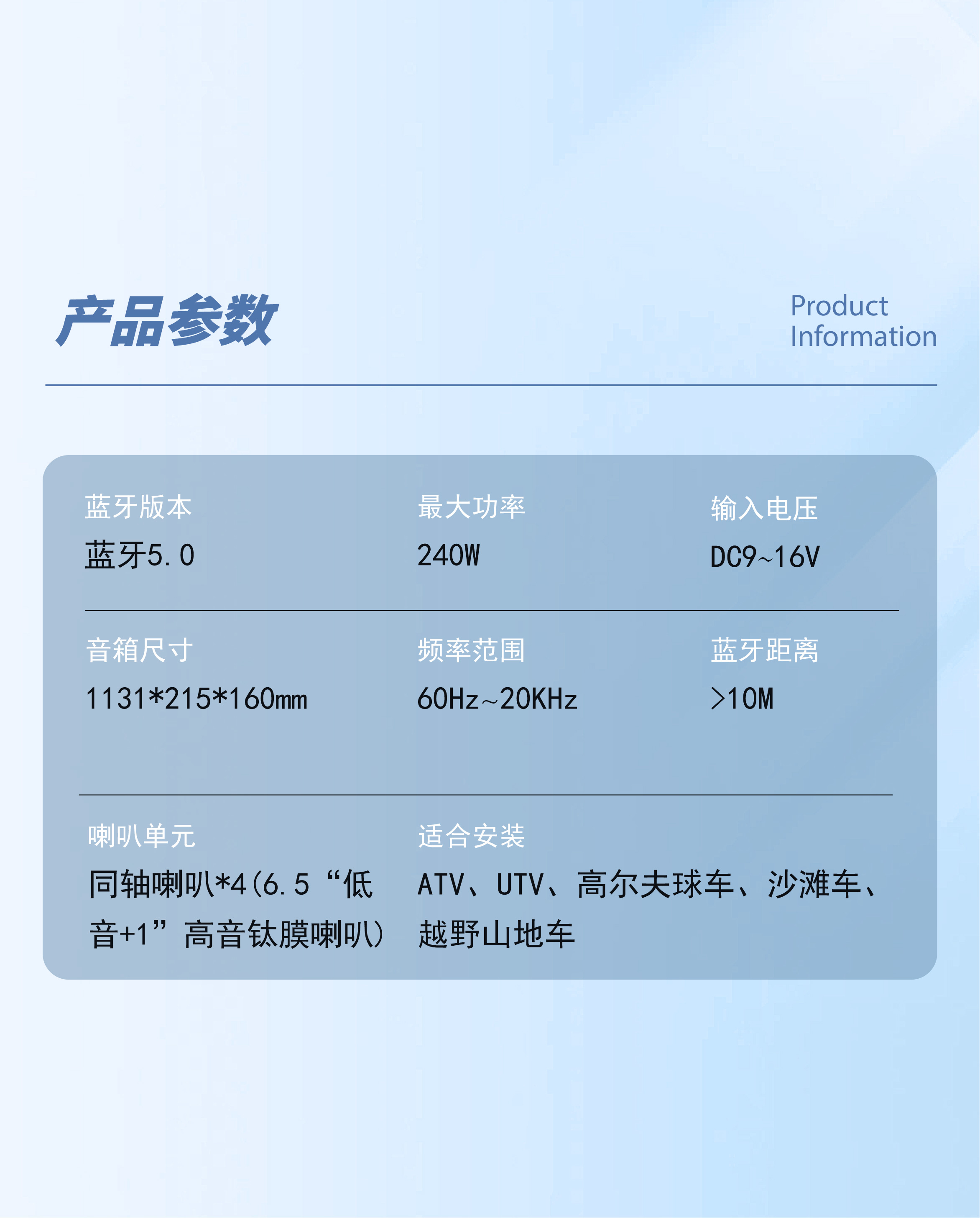 IP66防水防尘USB240WAM/FM阅读灯滚塑UTV两声道RGB灯环
